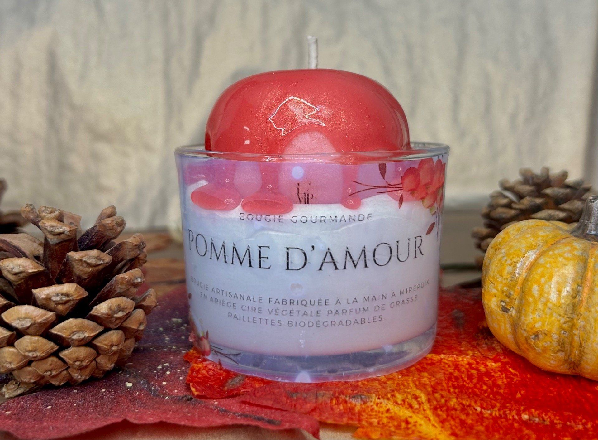 Notre Bougie Gourmande Pomme D'amour pèse 160g
