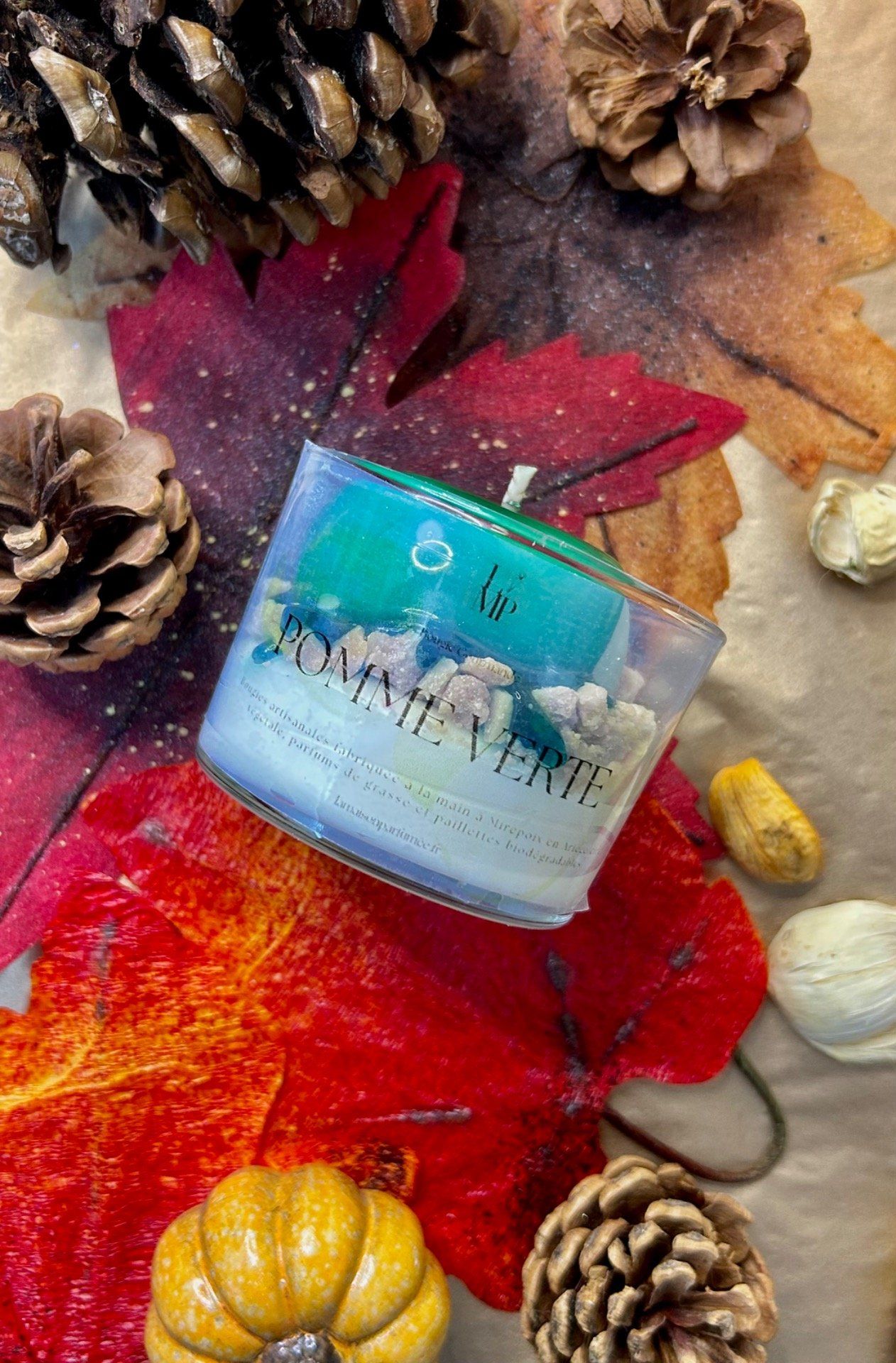 Notre Bougie Gourmande Pomme Verte pèse 160g